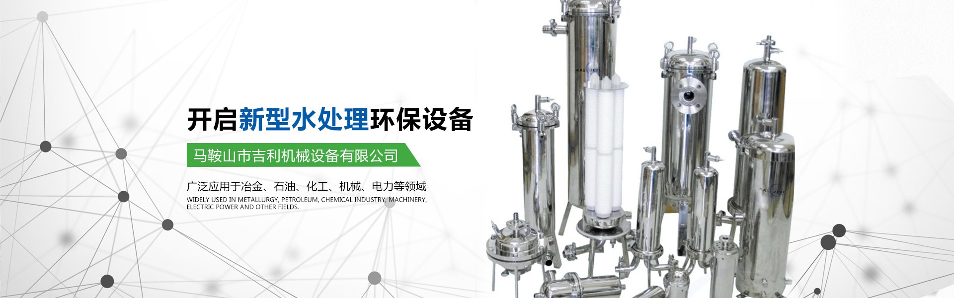 馬鞍山市吉利機(jī)械設(shè)備有限公司位于江南名城一馬鞍山市,交通十分便利。公司具有獨(dú)立法人資格,是集水處理設(shè)備的研發(fā)、設(shè)計(jì)、生產(chǎn)、銷(xiāo)售為一體的專(zhuān)業(yè)型企業(yè)。公司的主要產(chǎn)品有高中速過(guò)濾器、纖維球過(guò)濾器、新型除油過(guò)濾器、無(wú)閥過(guò)濾器、加藥裝置、管道全自動(dòng)過(guò)濾器、淺層砂過(guò)濾器、攪拌機(jī)、沙水分離器、管道靜態(tài)混合器、化水設(shè)備、反滲透等膜處理設(shè)備、空氣過(guò)濾器等。公司所研發(fā)的產(chǎn)品有占地少、處理效果好、投資省、操作管理方便的優(yōu)點(diǎn),受到客戶(hù)的一致好評(píng)。